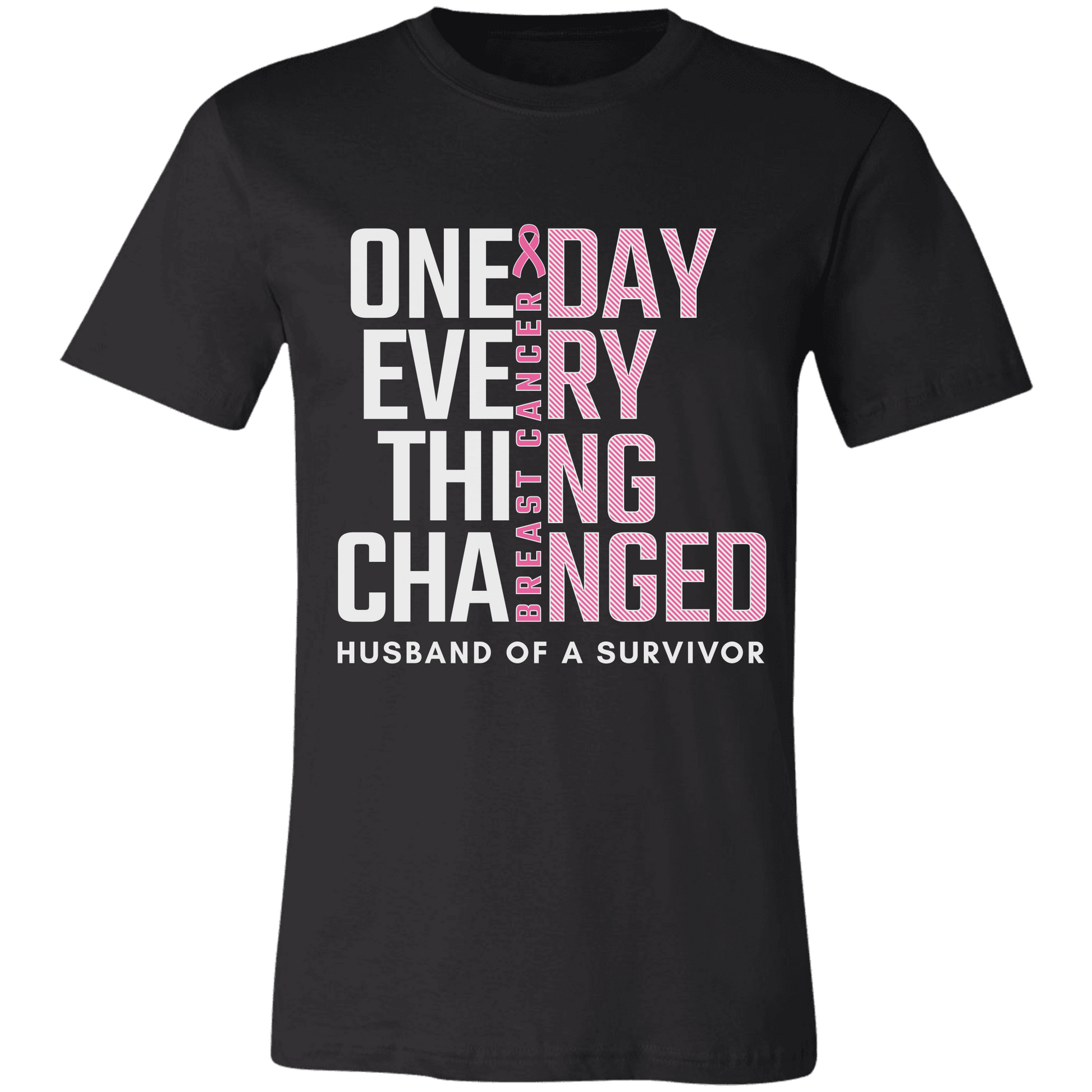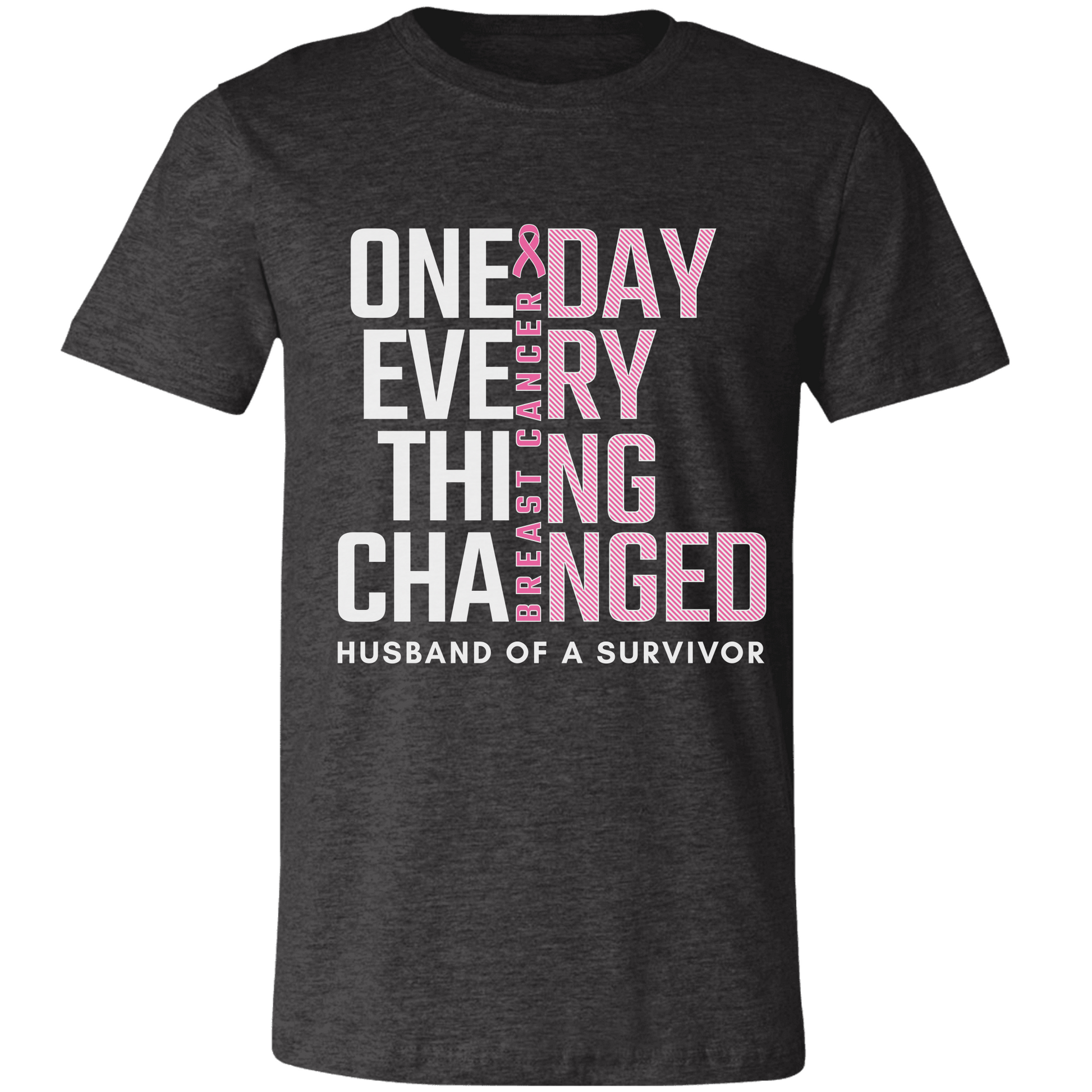 Breast Cancer Survivor Shirt "One Day Everything Changed" – Husband of a Survivor T-shirt, Bella Canvas 3001, Pink Ribbon Awareness Tee
