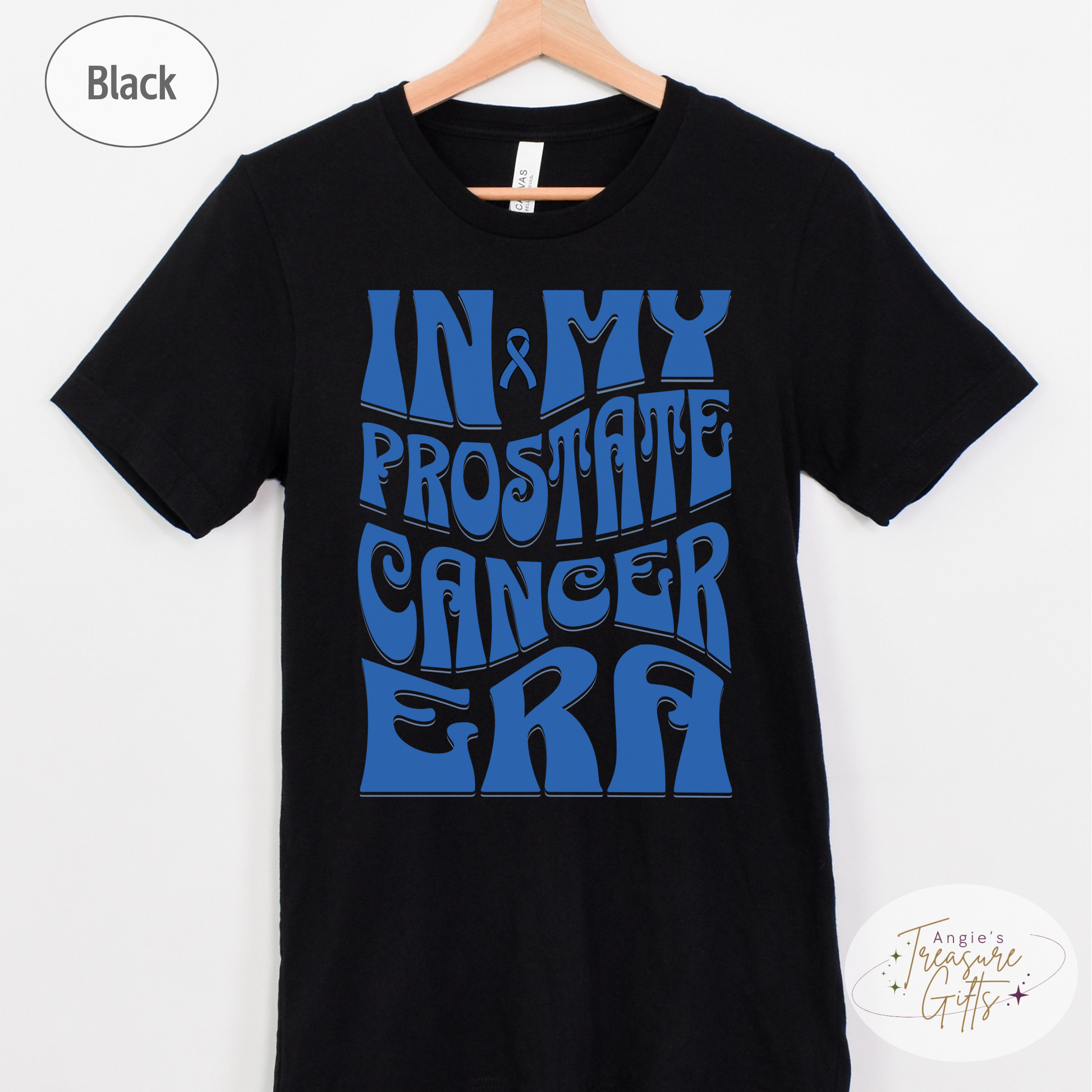 Show strength and support with this In My Prostate Cancer Era shirt. Featuring a light blue awareness ribbon and retro design, this tee is a bold symbol of hope, awareness, and unity for fighters, survivors, and loved ones.