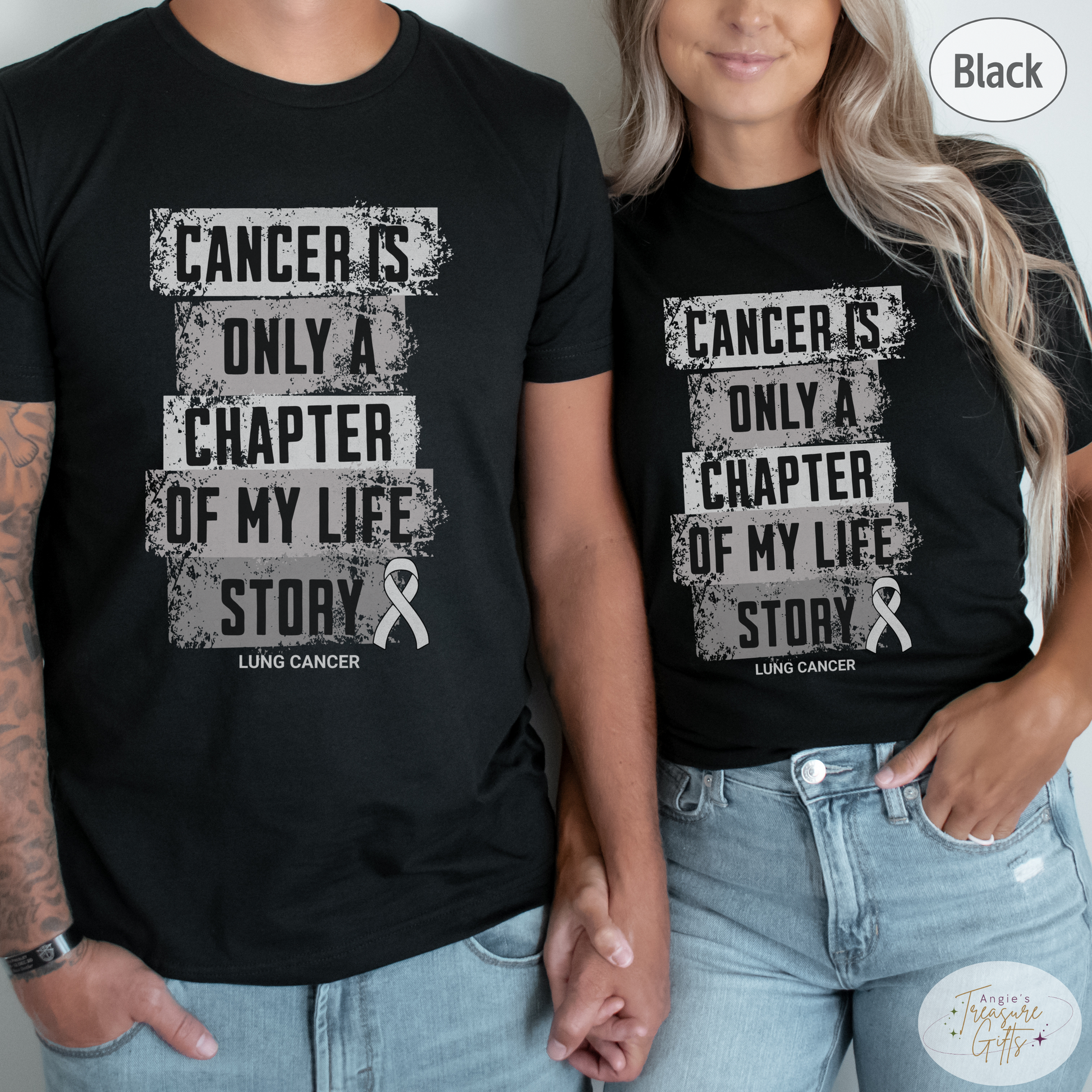 Lung Cancer Awareness T-Shirt – Cancer Is Only a Chapter of My Life Story – White Ribbon Cancer Support & Survivor Shirt
