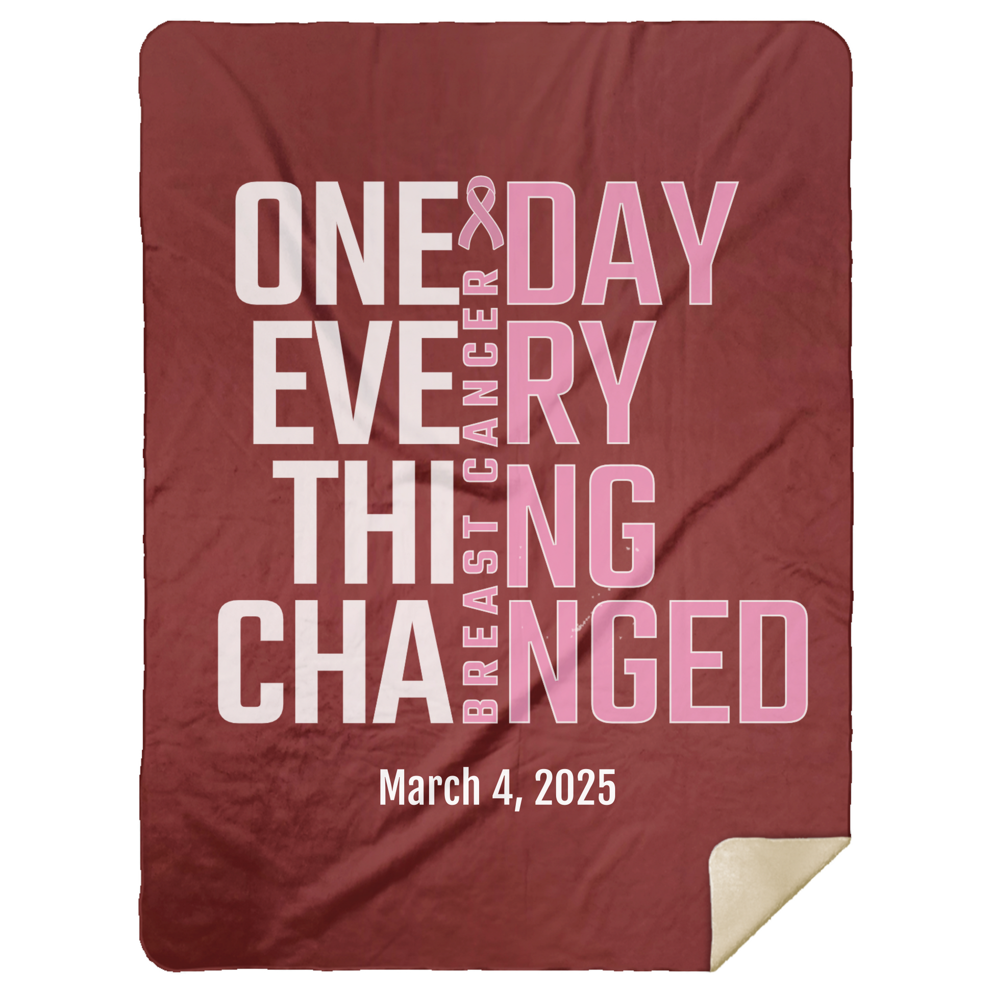 Personalized Breast Cancer Awareness Sherpa Blanket – One Day Everything Changed – Custom Name & Date - Three Sizes - Pink Ribbon