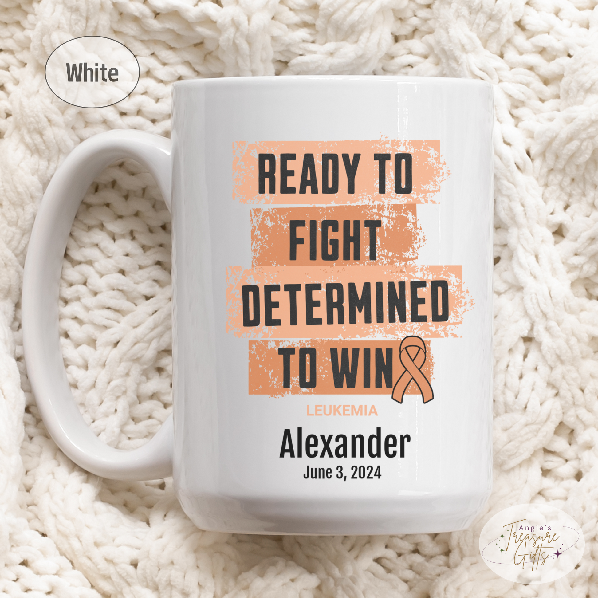 Personalized Leukemia Awareness Mug – “Ready to Fight, Determined to Win” – Orange Ribbon Survivor Gift