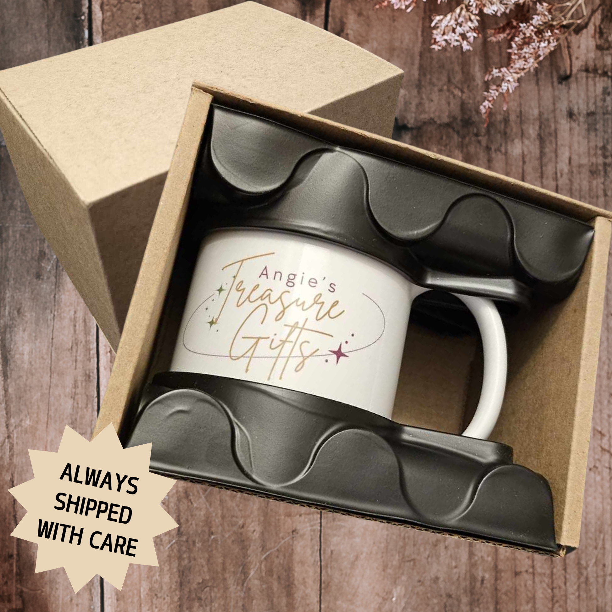 Available in 11oz and 15oz glossy ceramic mugs, dishwasher and microwave safe for everyday use.