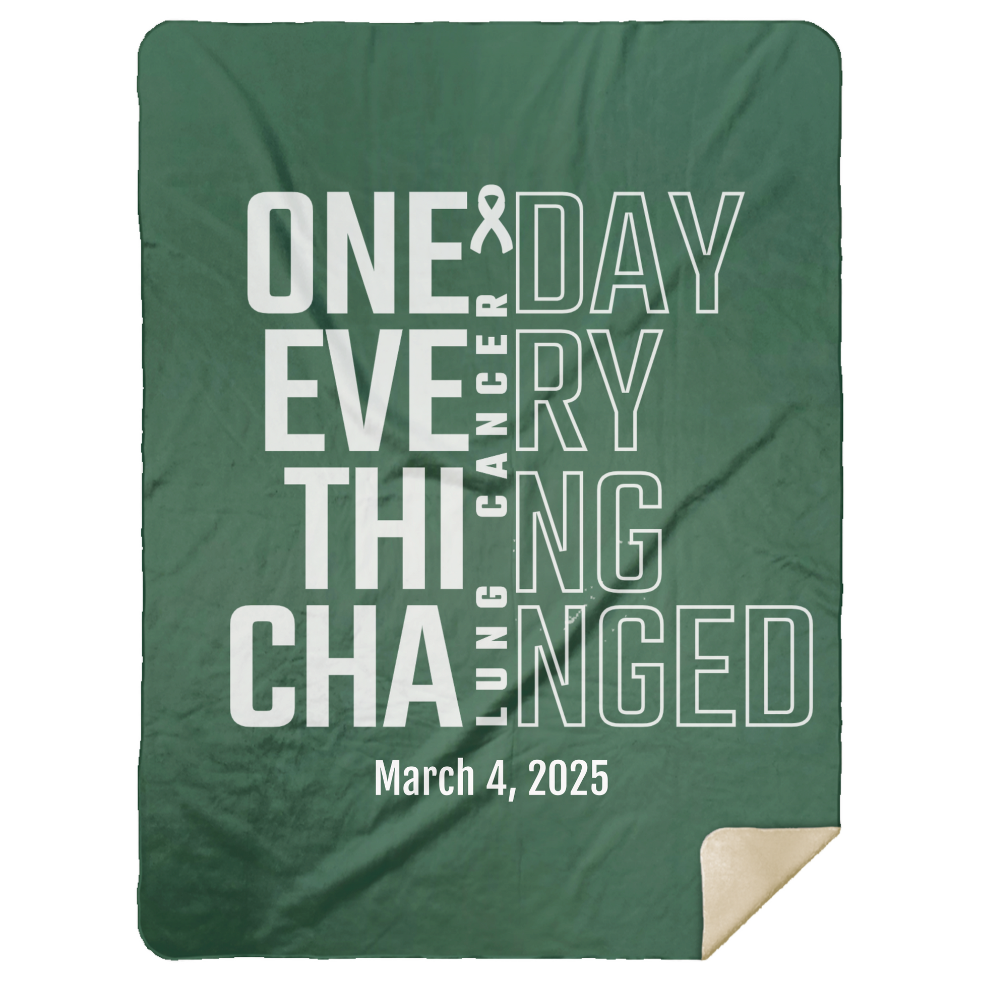 Wrap yourself in comfort and strength with this personalized lung cancer awareness sherpa blanket. Featuring the powerful phrase “One Day Everything Changed” alongside the white ribbon, it’s a touching tribute to the journey of hope, resilience, and love. Personalize with a name, date, or year to honor survivorship, support a warrior, or remember a loved one.