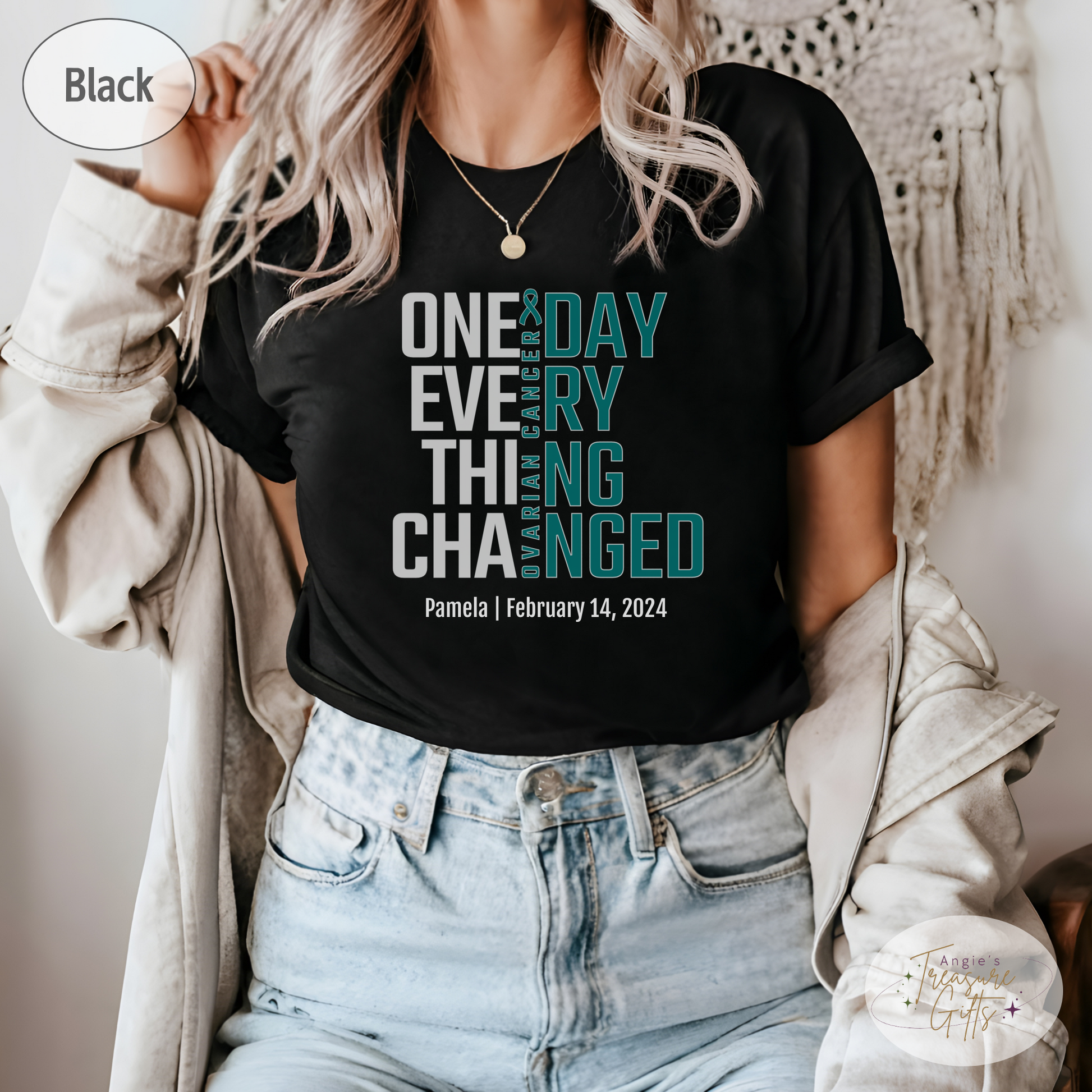 Personalized Ovarian Cancer Awareness T-Shirt – One Day Everything Changed – Custom Survivor, Warrior, Memorial Gift