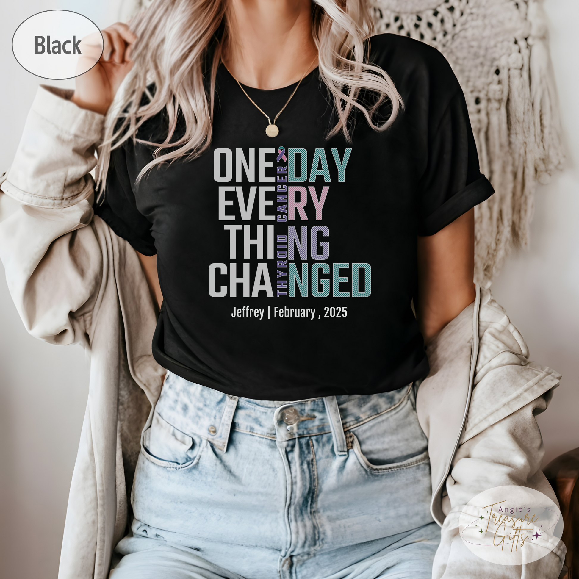 Personalized Thyroid Cancer Awareness T-Shirt – One Day Everything Changed – Custom Survivor, Warrior, Memorial Gift