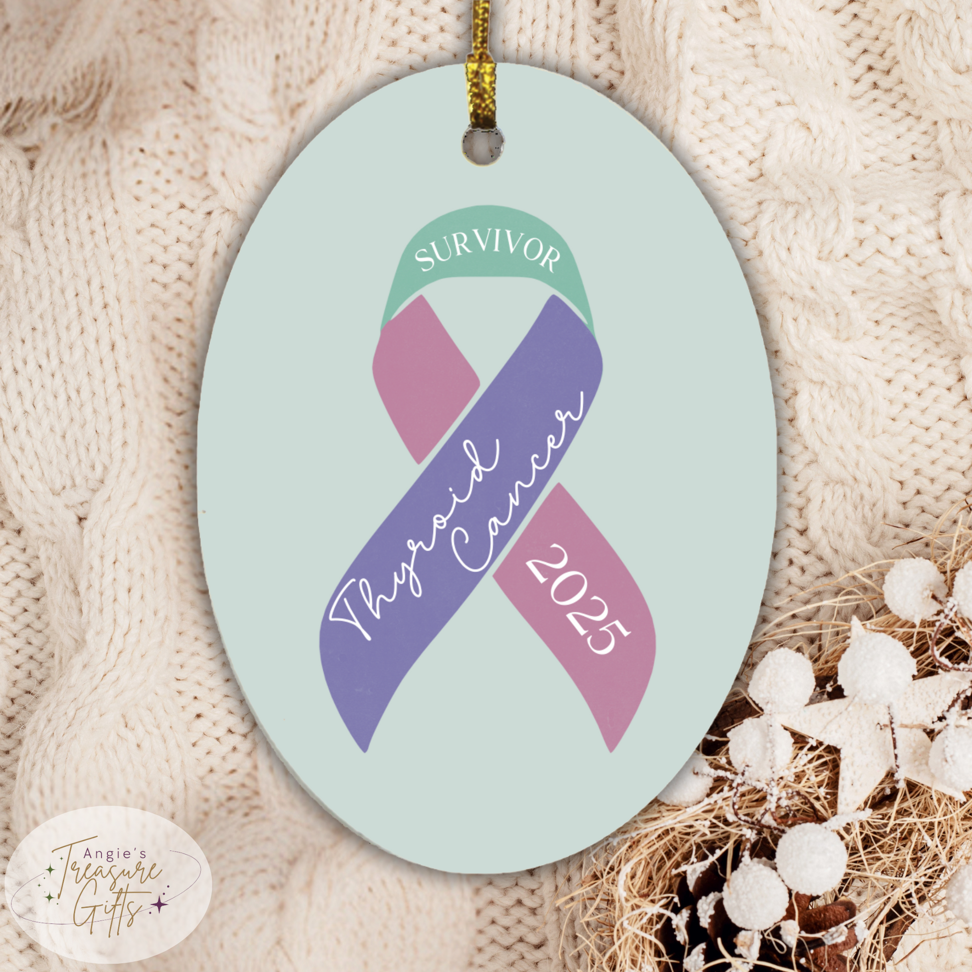 Personalized Thyroid Cancer Ornament – Teal, Purple, & Pink Awareness Ribbon – Survivor, Warrior, or Fighter – Custom Year Keepsake Gift