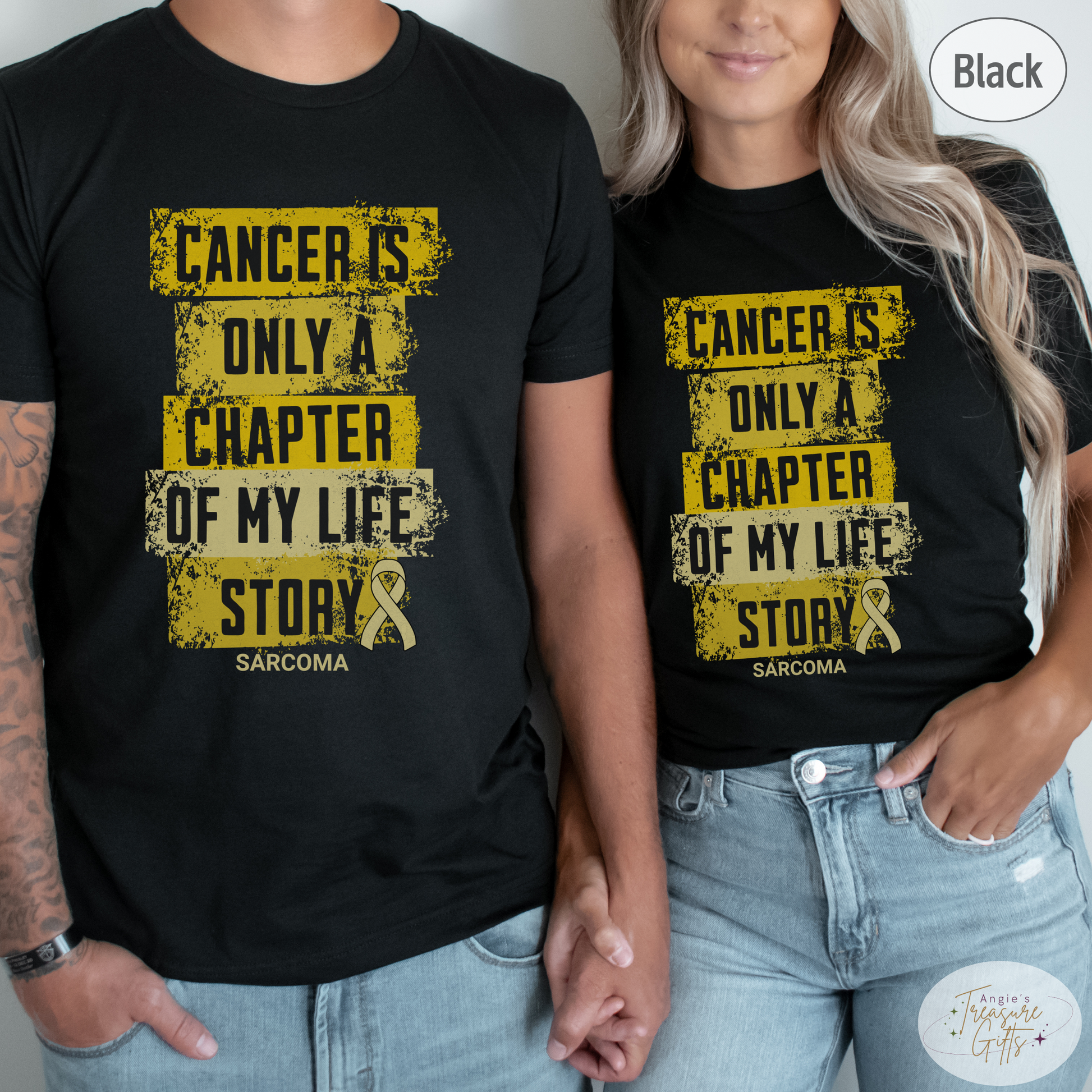 Sarcoma Cancer Awareness T-Shirt – Cancer Is Only a Chapter of My Life Story – Yellow Ribbon Survivor & Support Shirt
